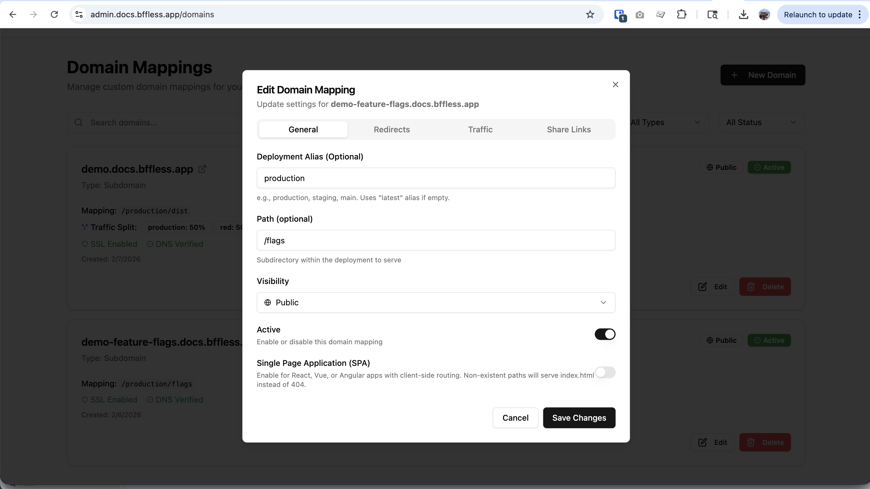 demo-feature-flags.docs.bffless.app - Mapping: