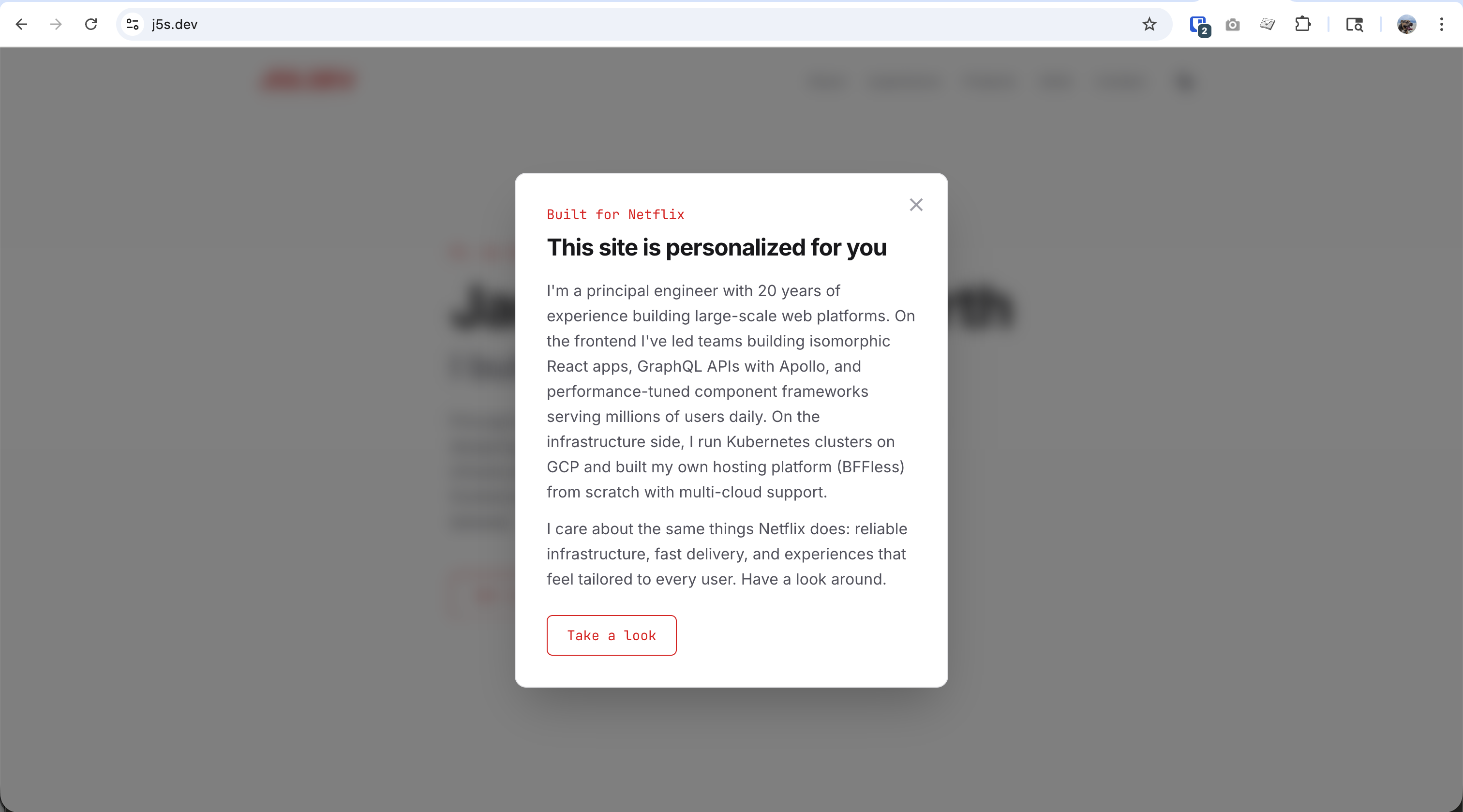 netflix- Contains Netflix-specific content and messagingoptimizely- Contains Optimizely-specific content and messagingproduction- General portfolio version