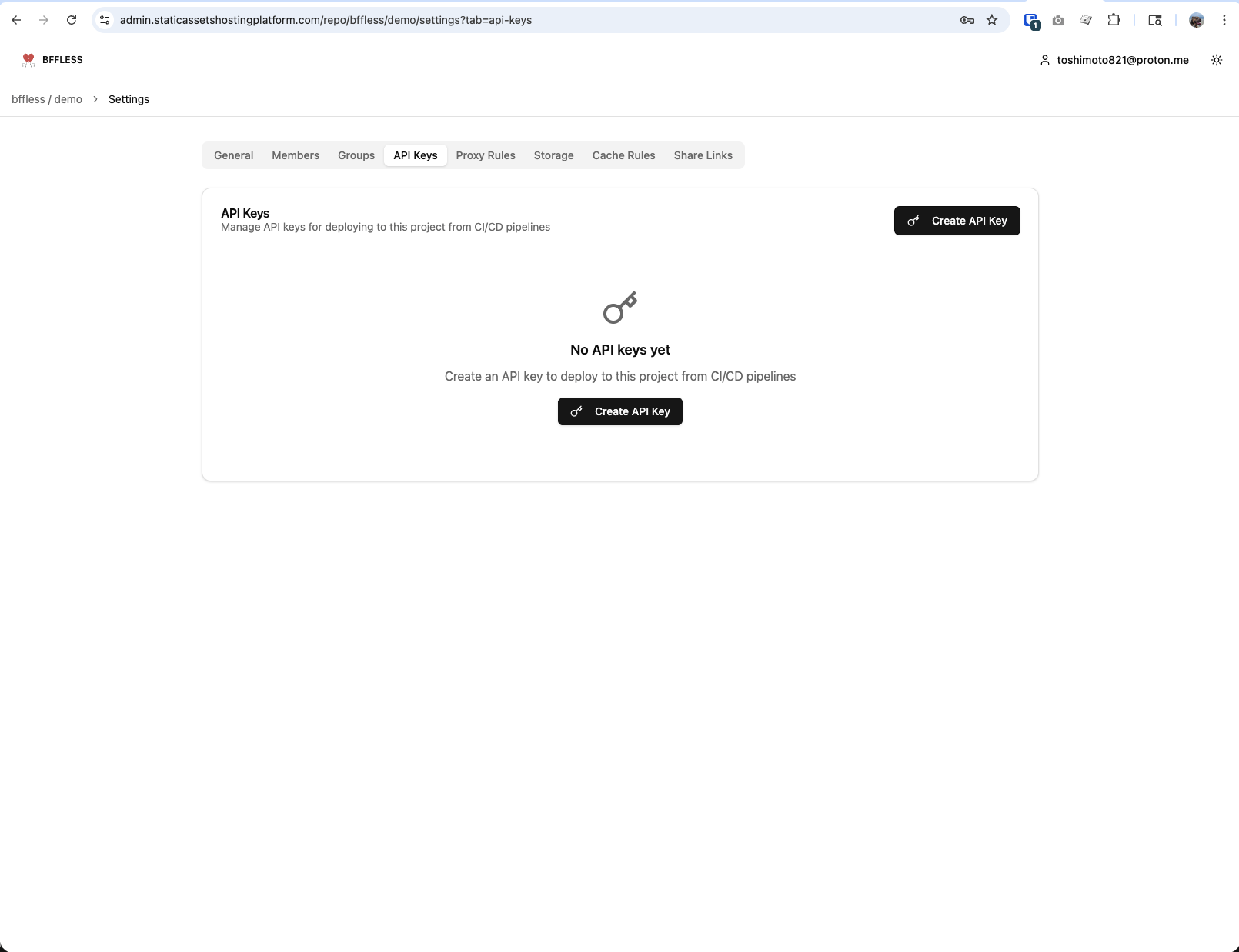 API keys authenticate your CI/CD pipeline to upload assets to this repository.